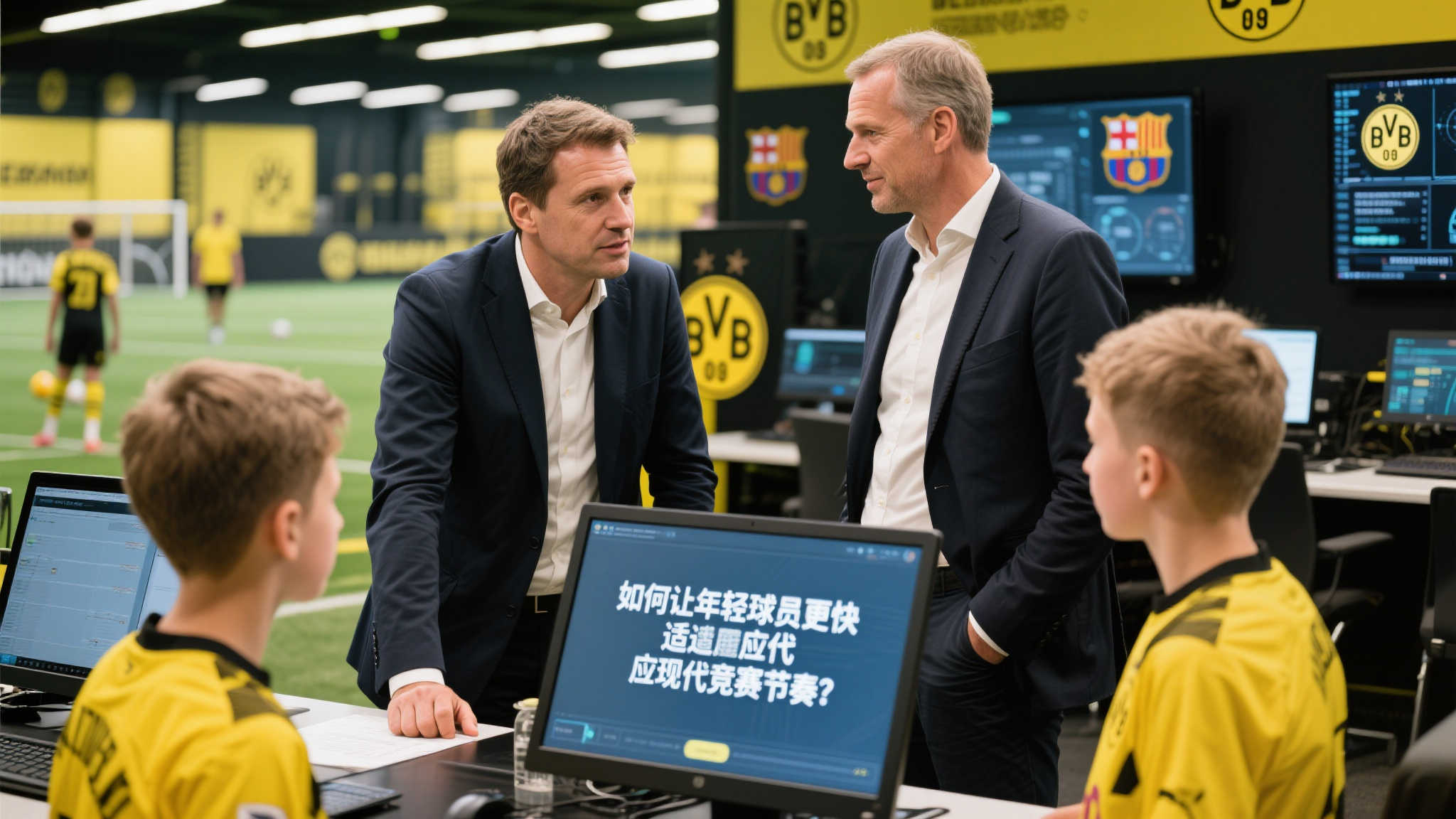 温格携手德国足协主席纽恩多夫走访多特训练基地,与瓦共同交流